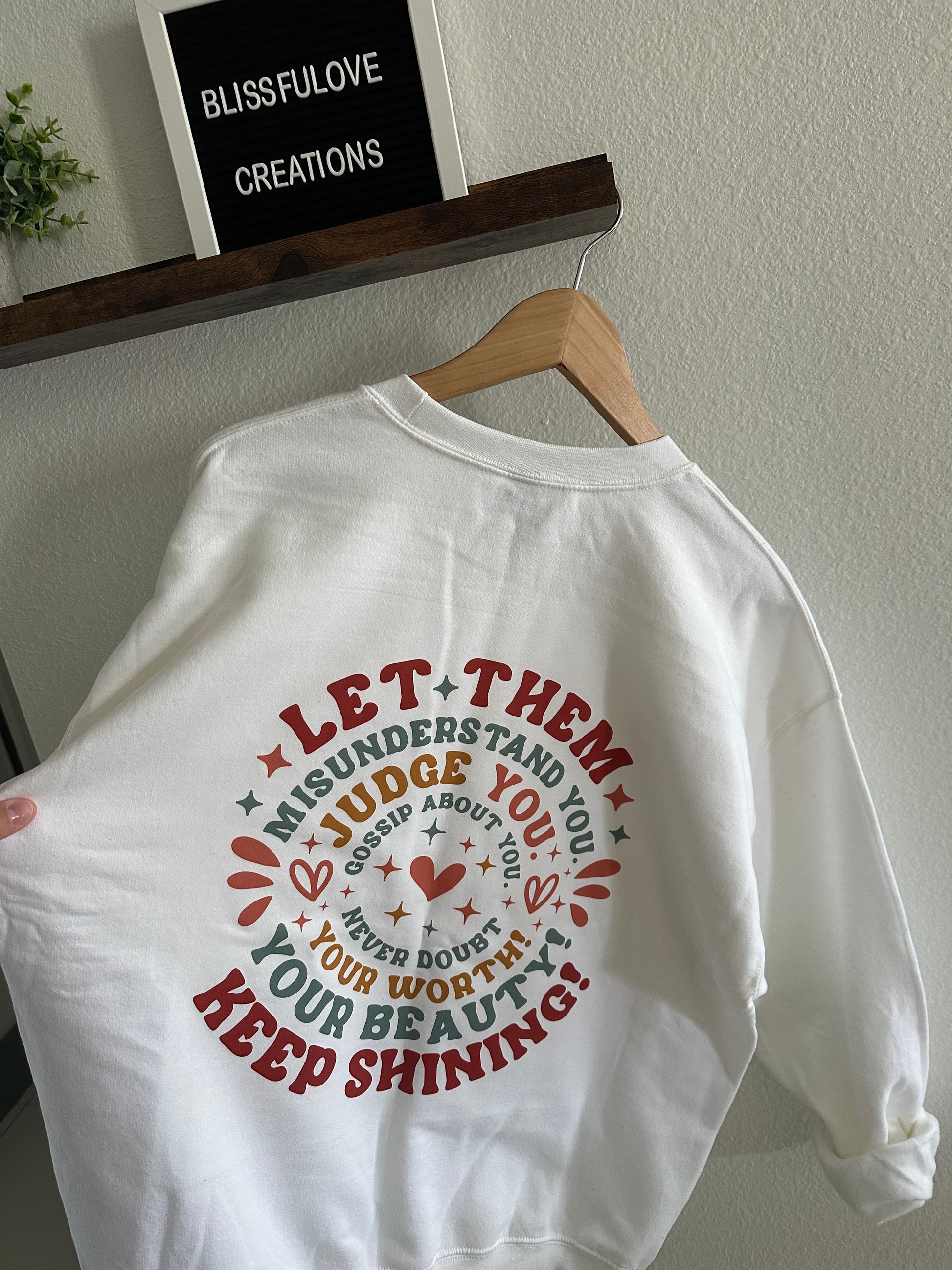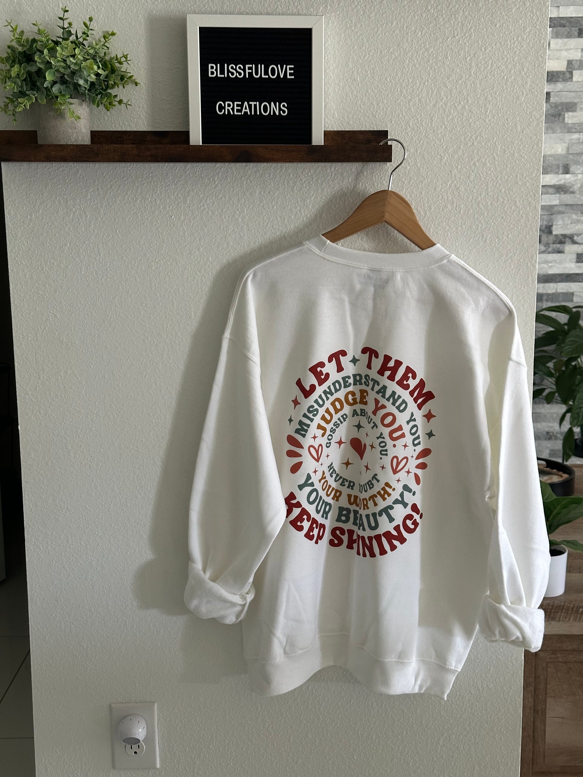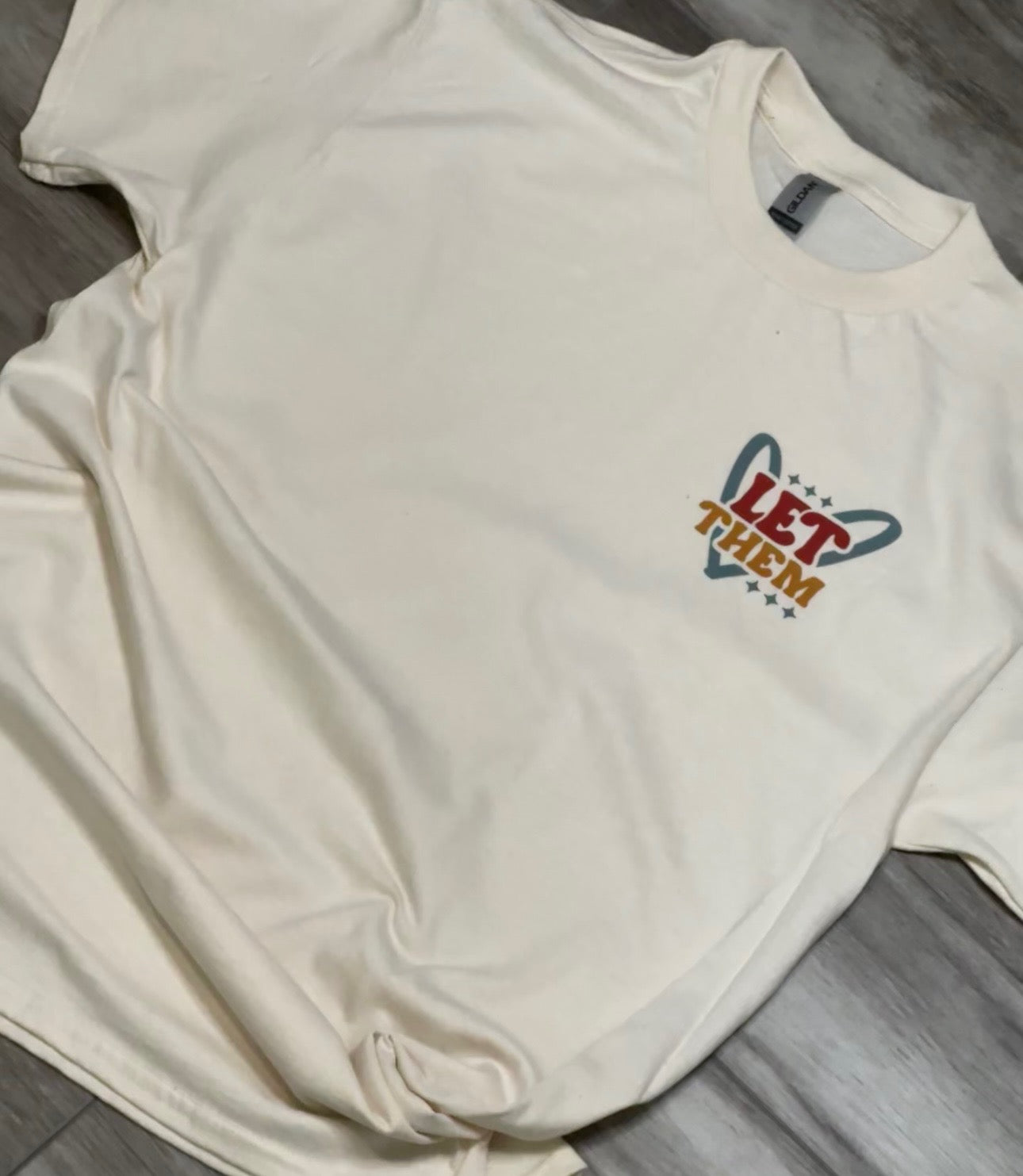 Sweaters come in white and T-shirts come in a cream color, unless requested otherwise.